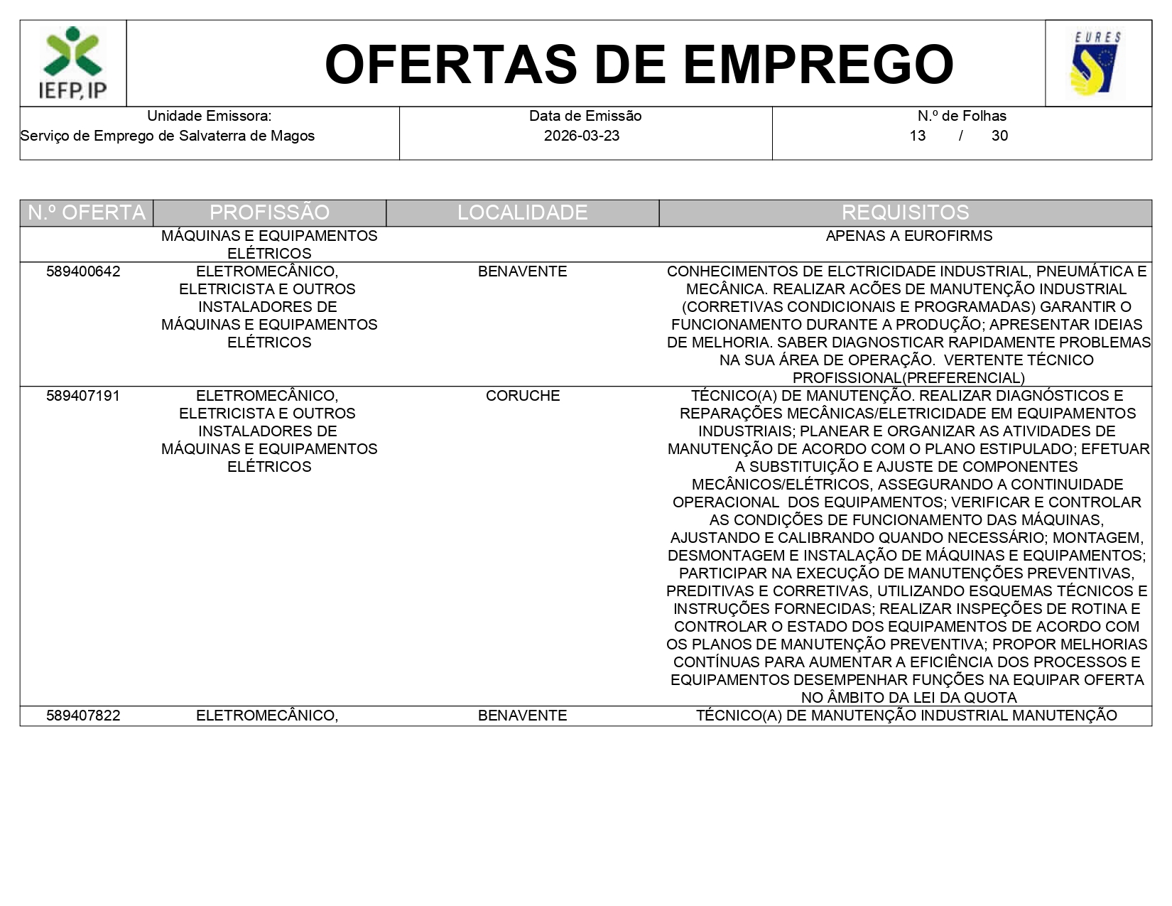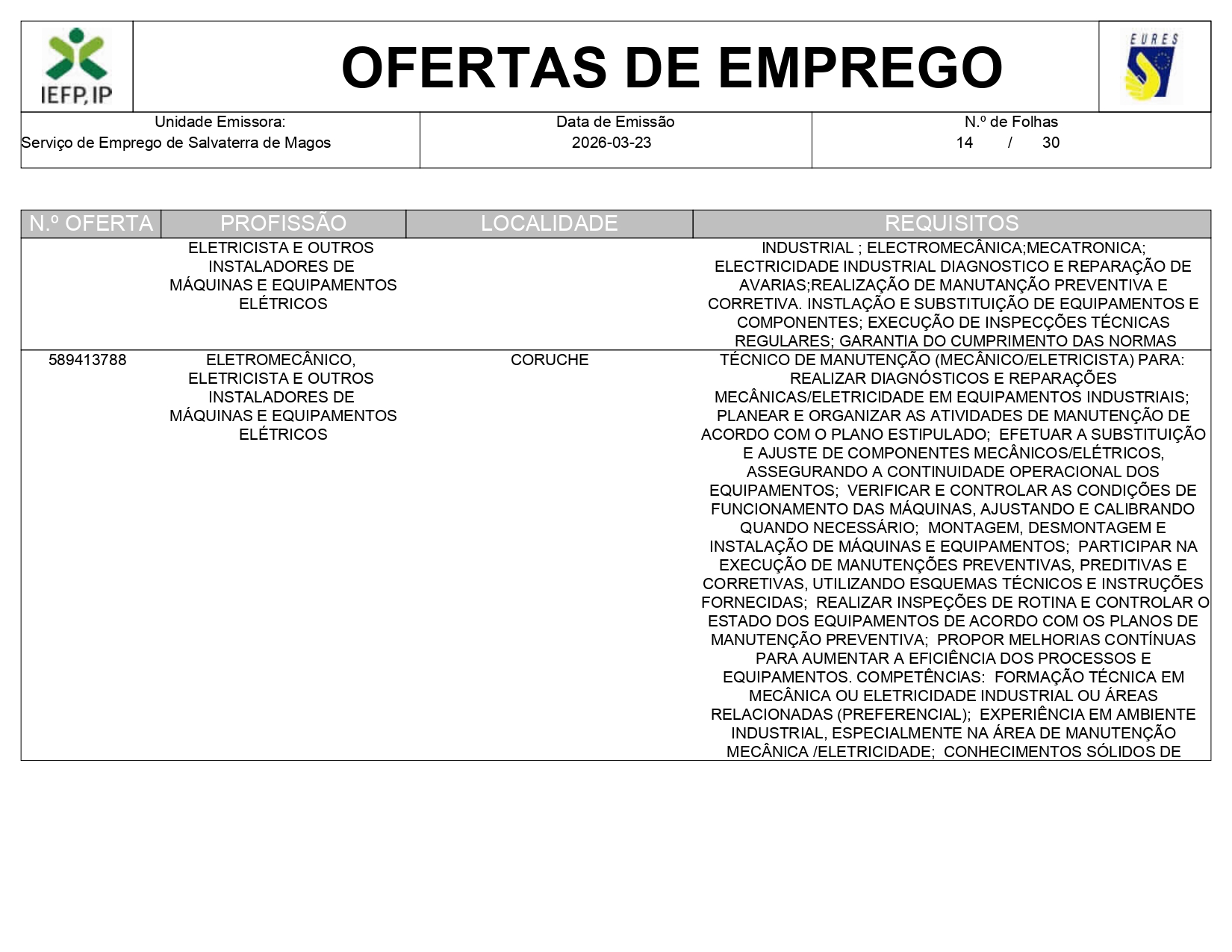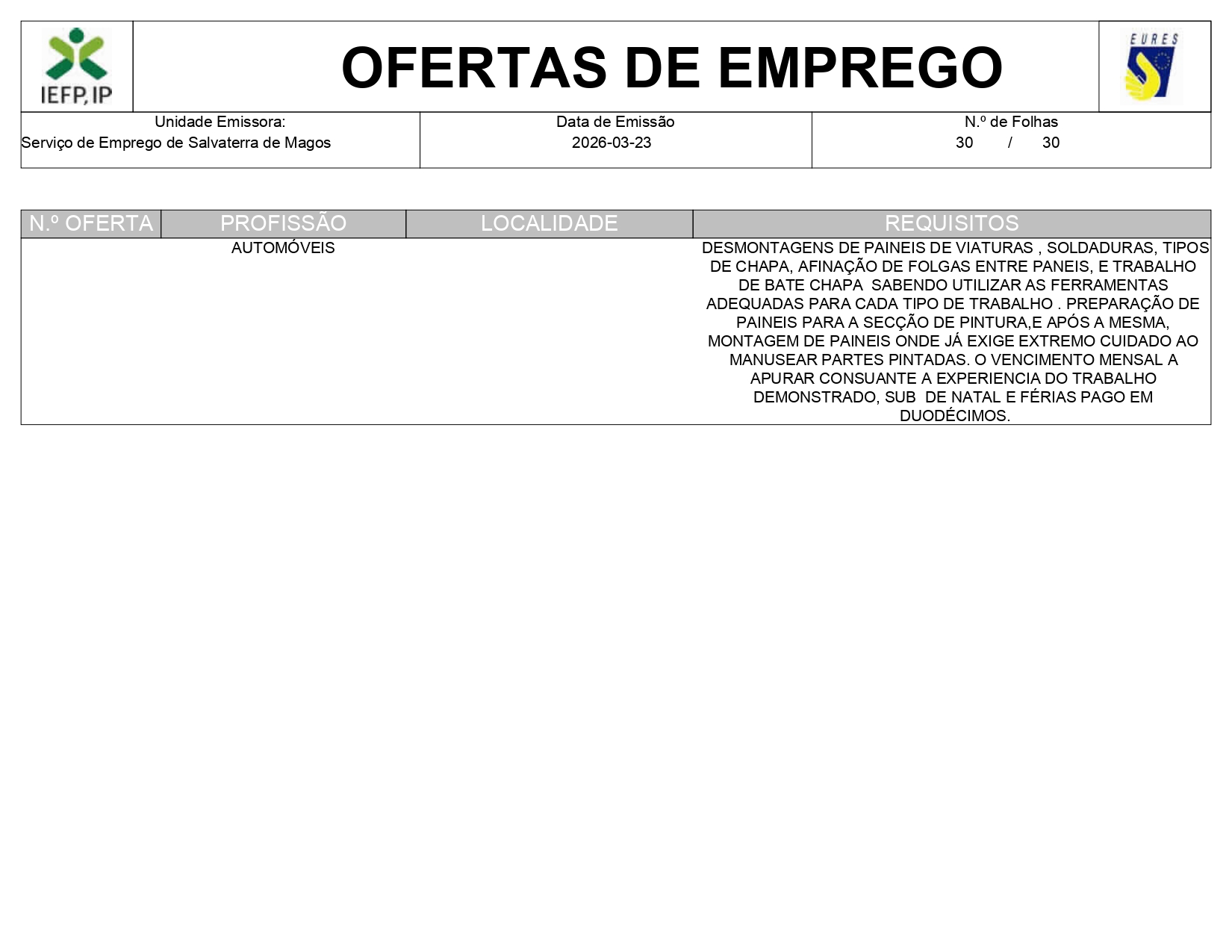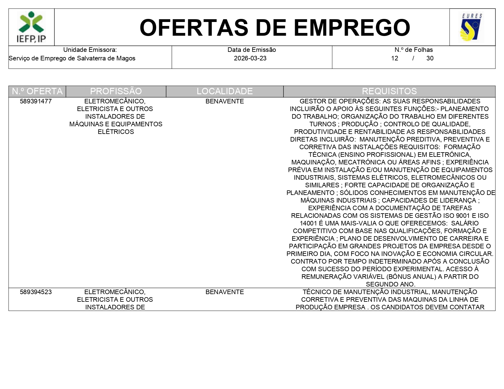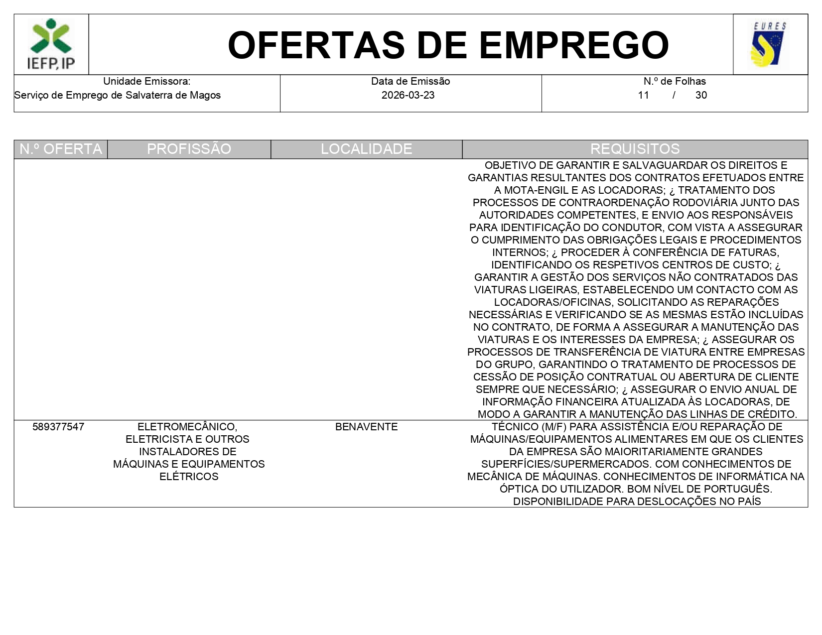 Ofertas de empregos IEFP