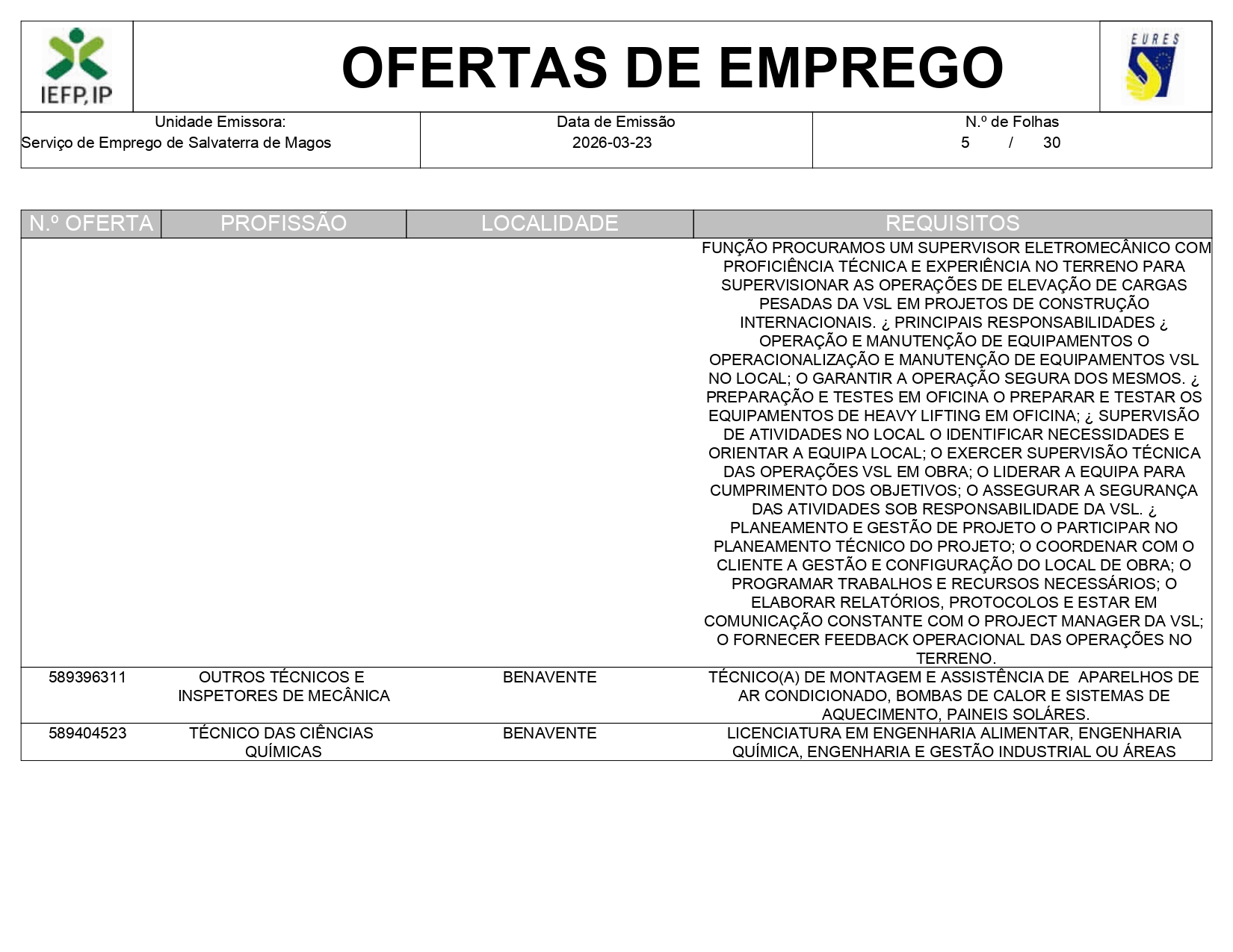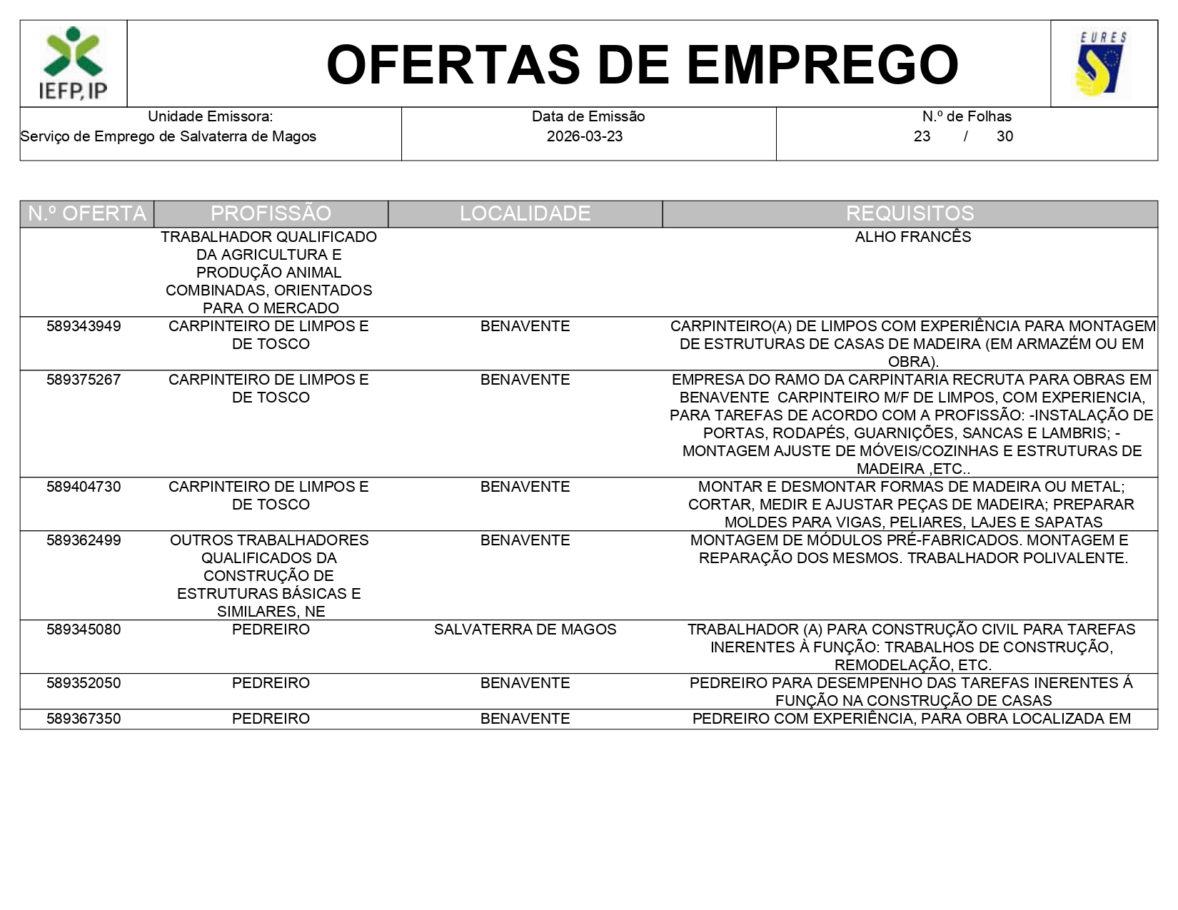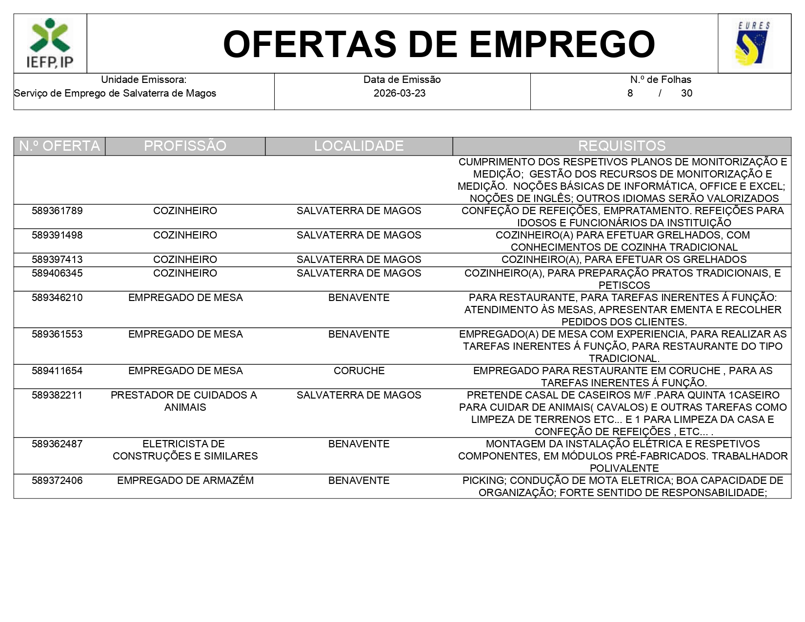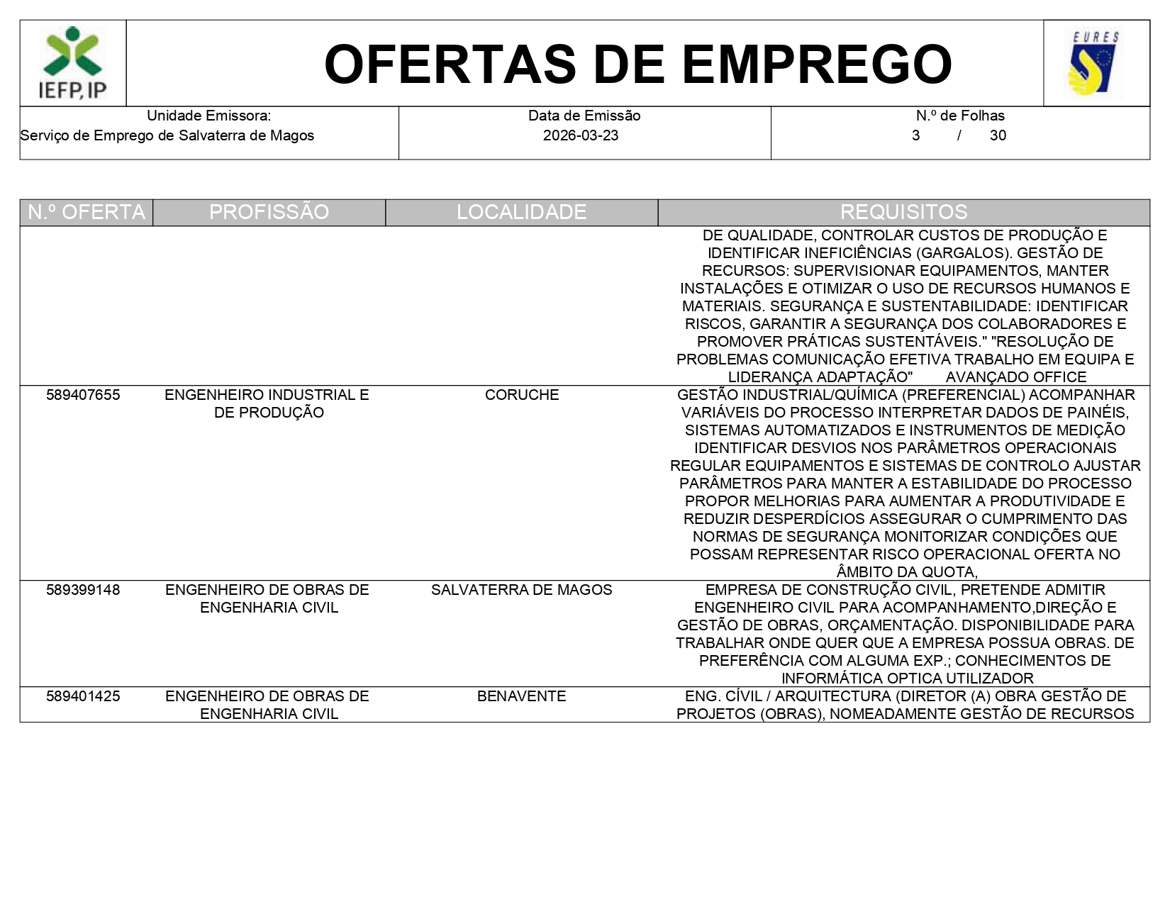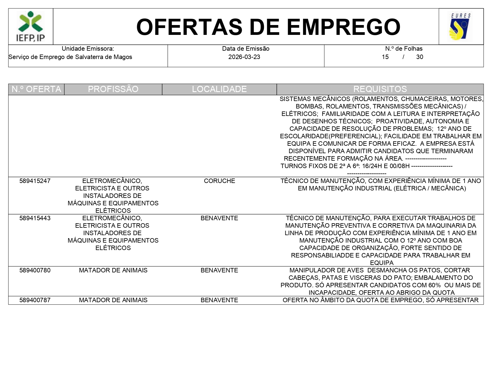 Ofertas de empregos IEFP
