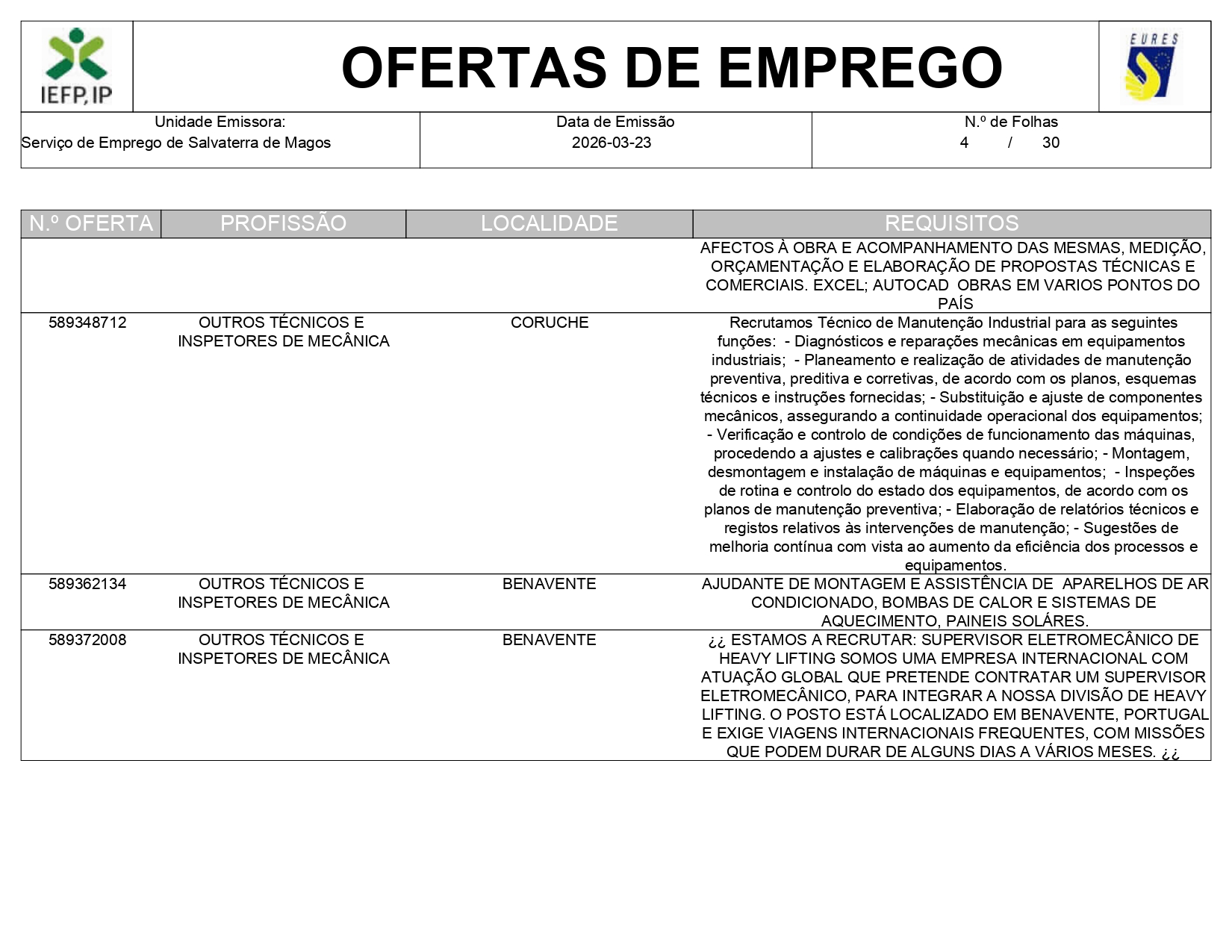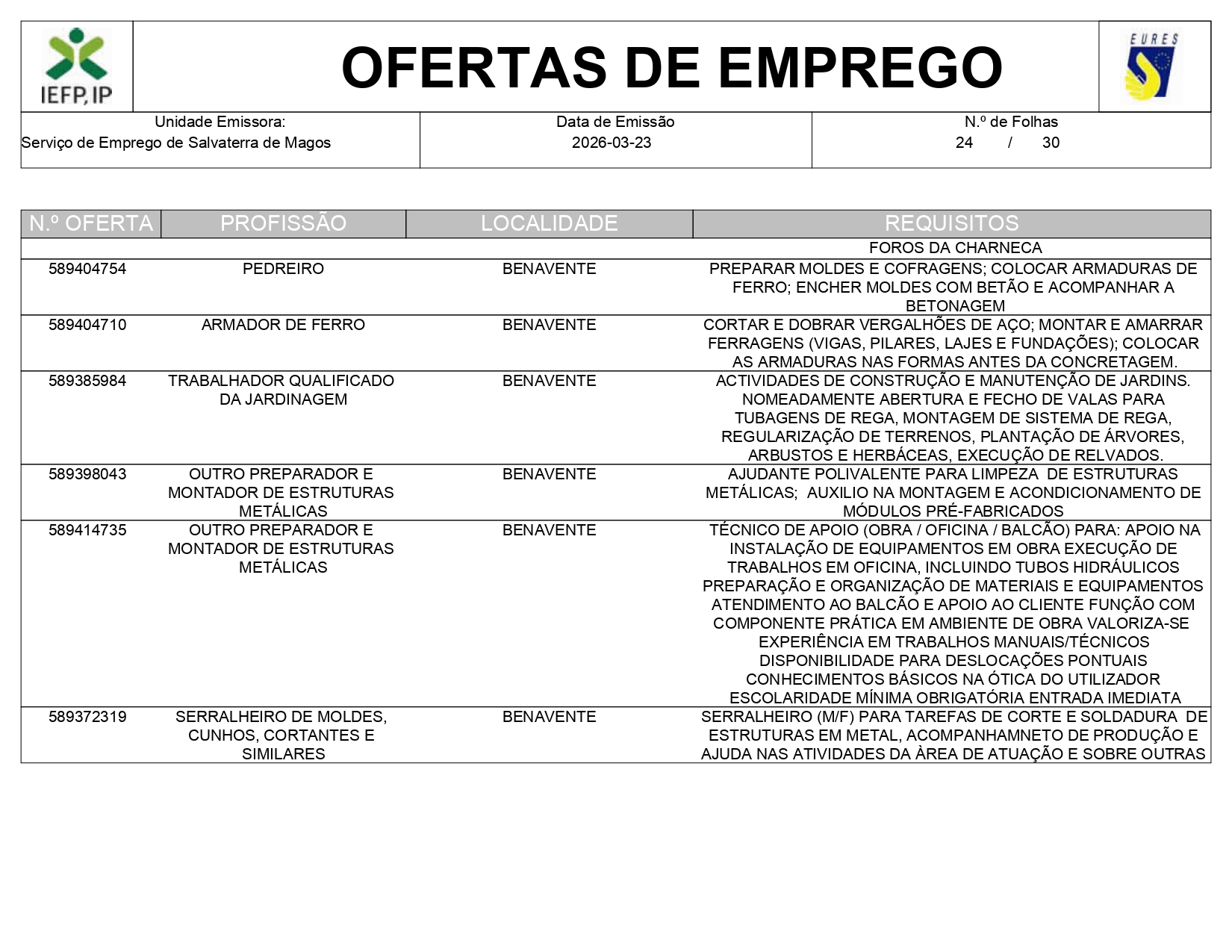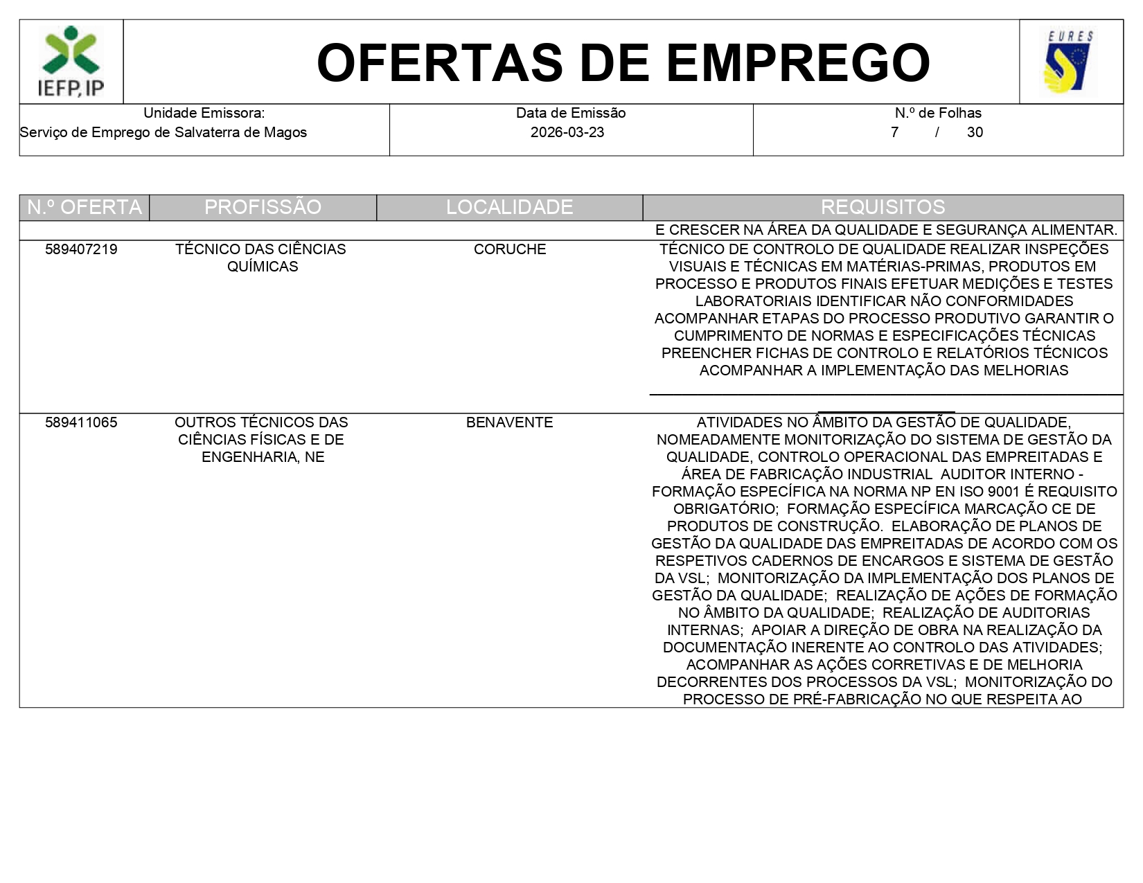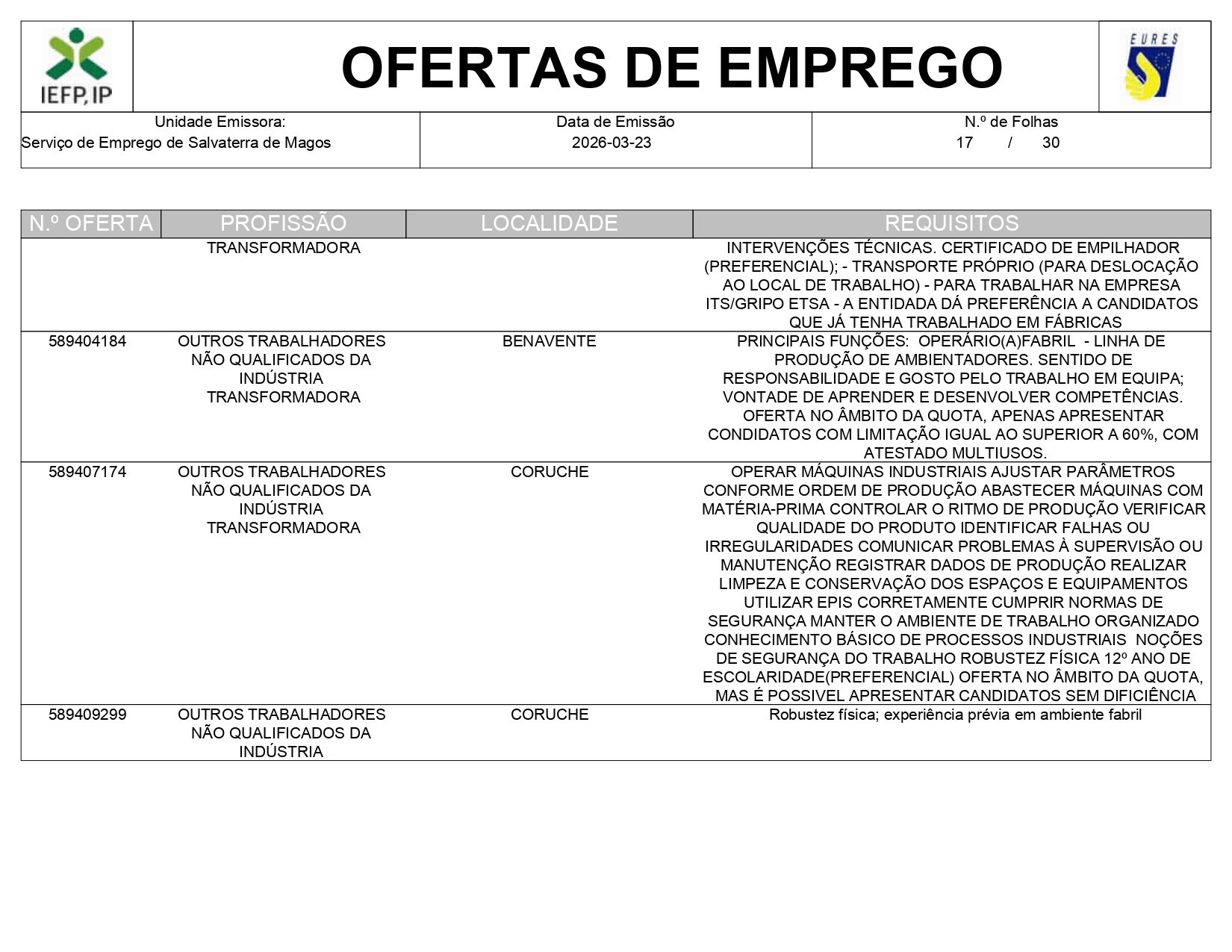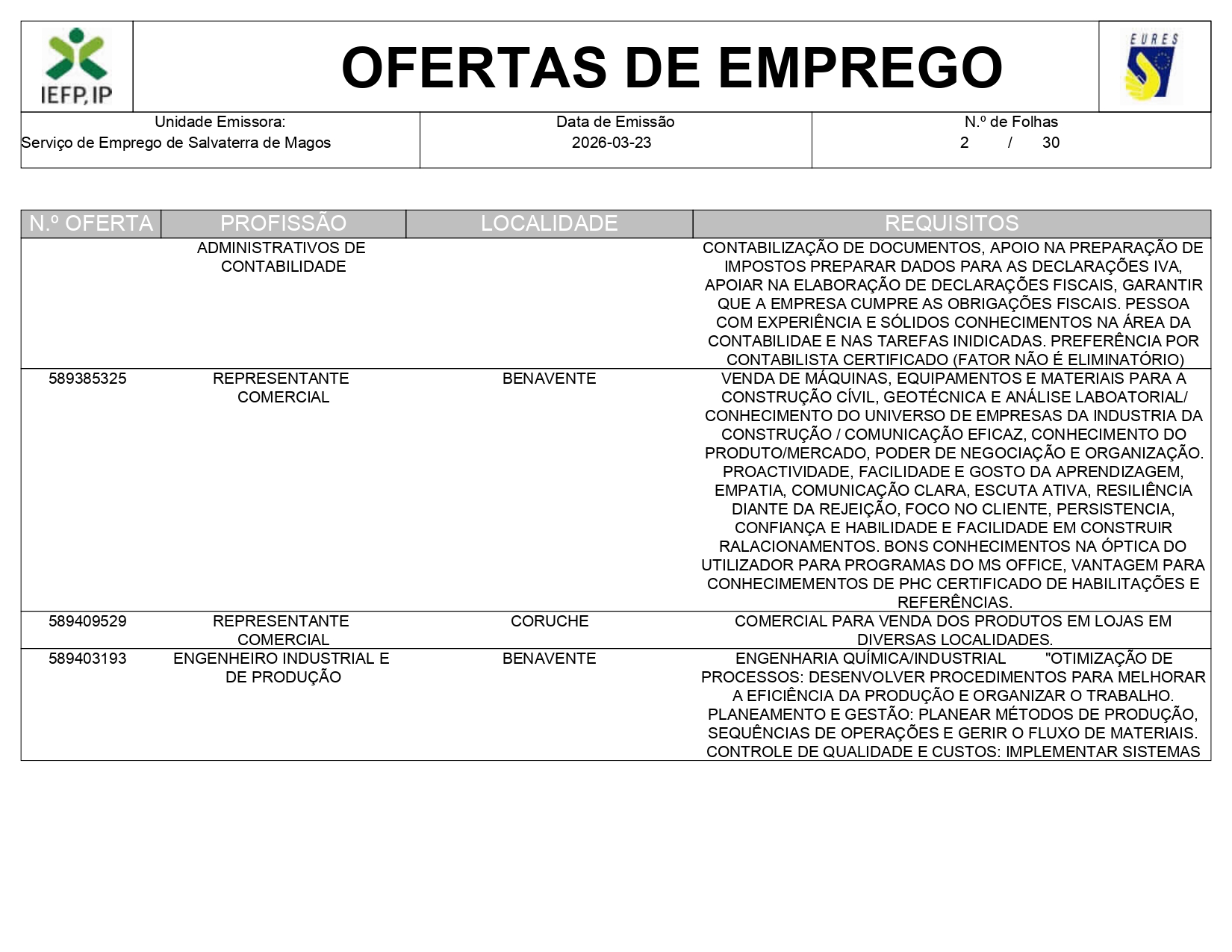 Ofertas de empregos IEFP