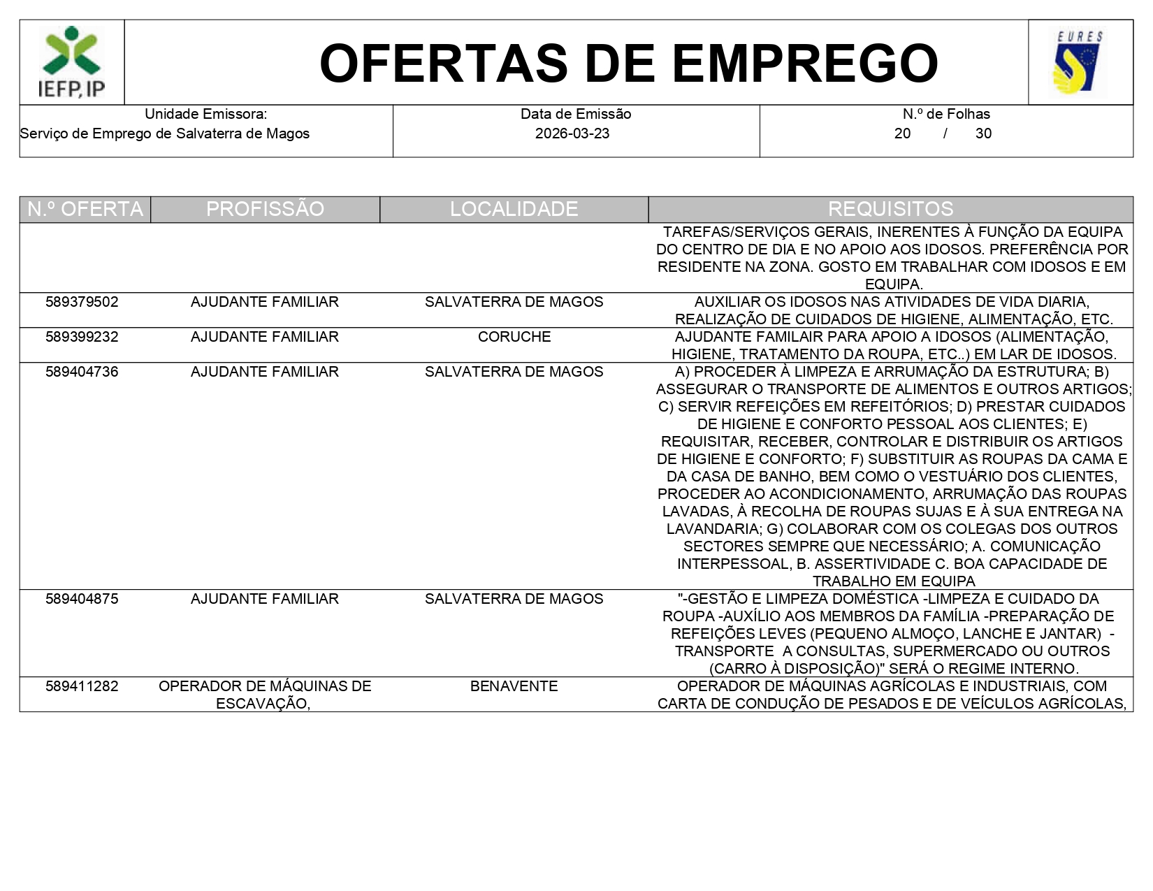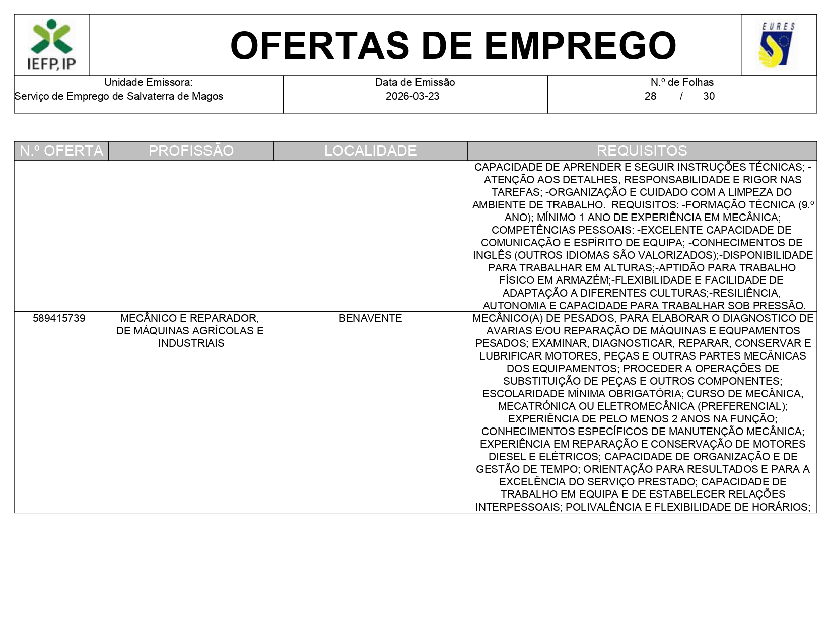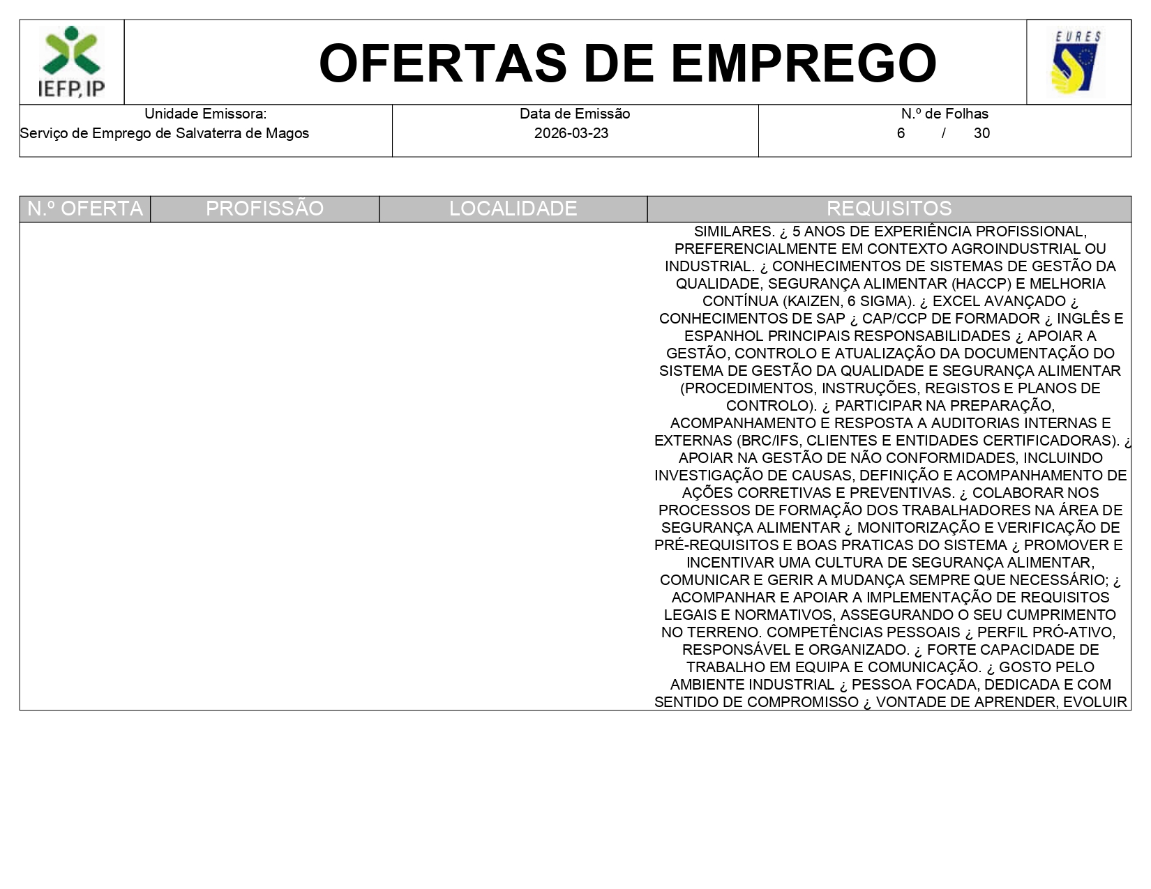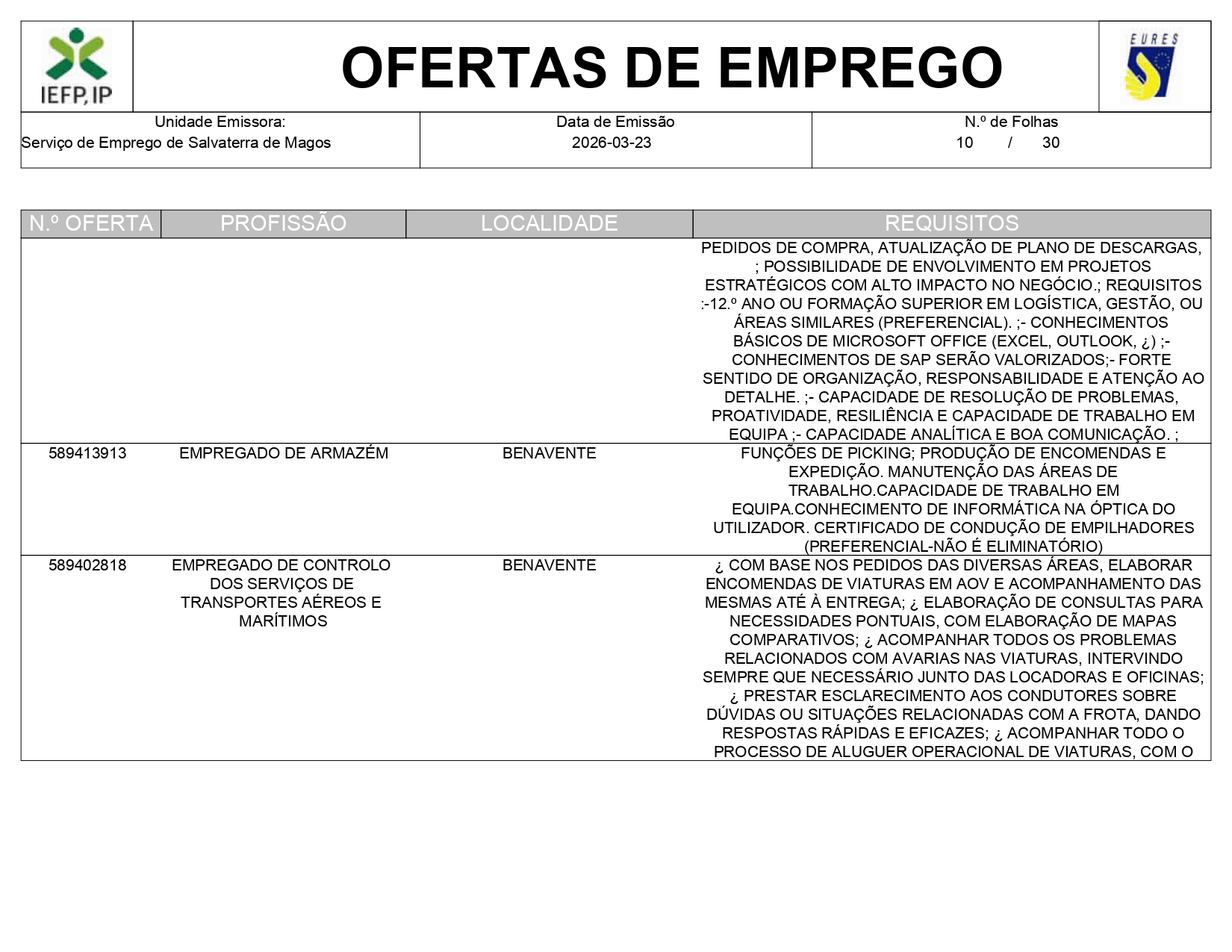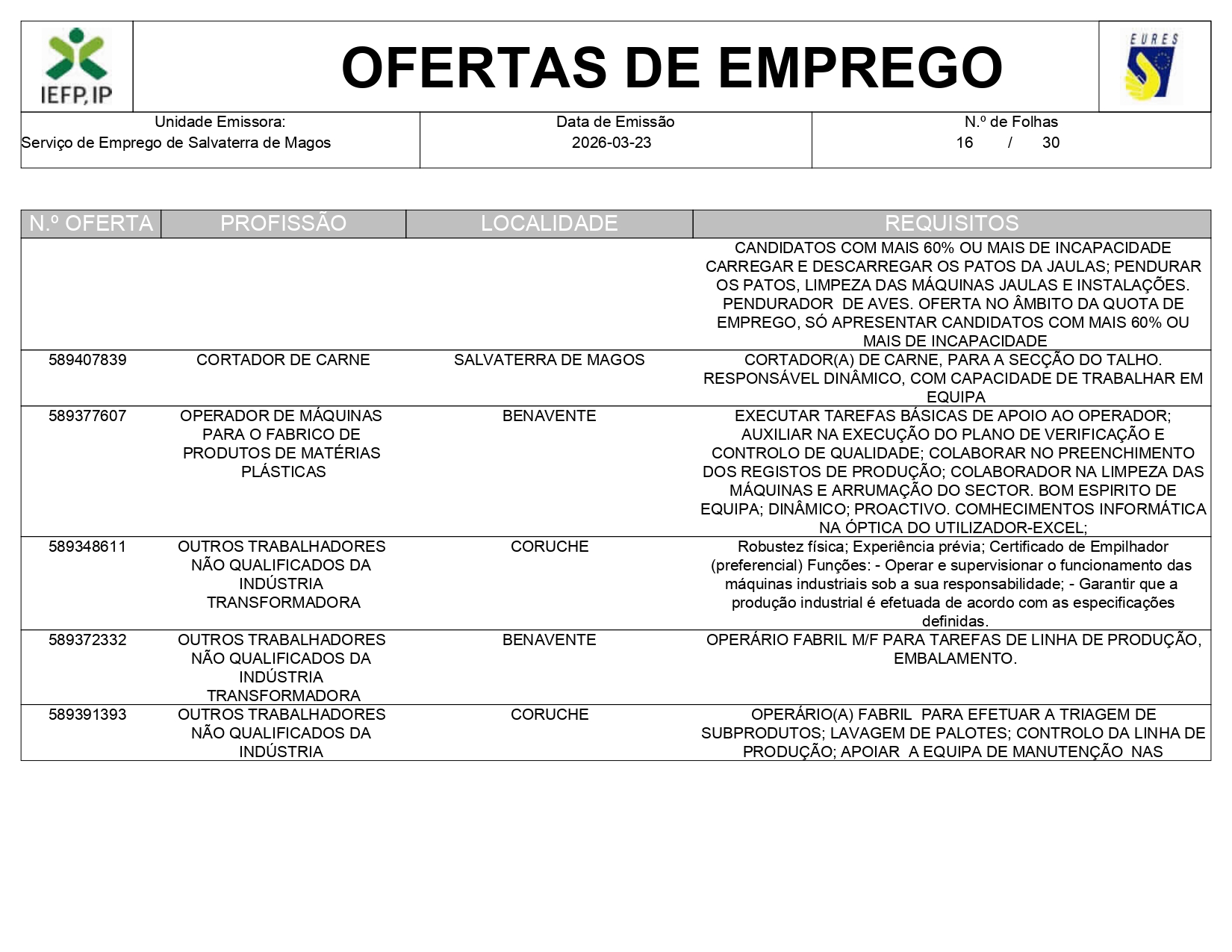 Ofertas de empregos IEFP