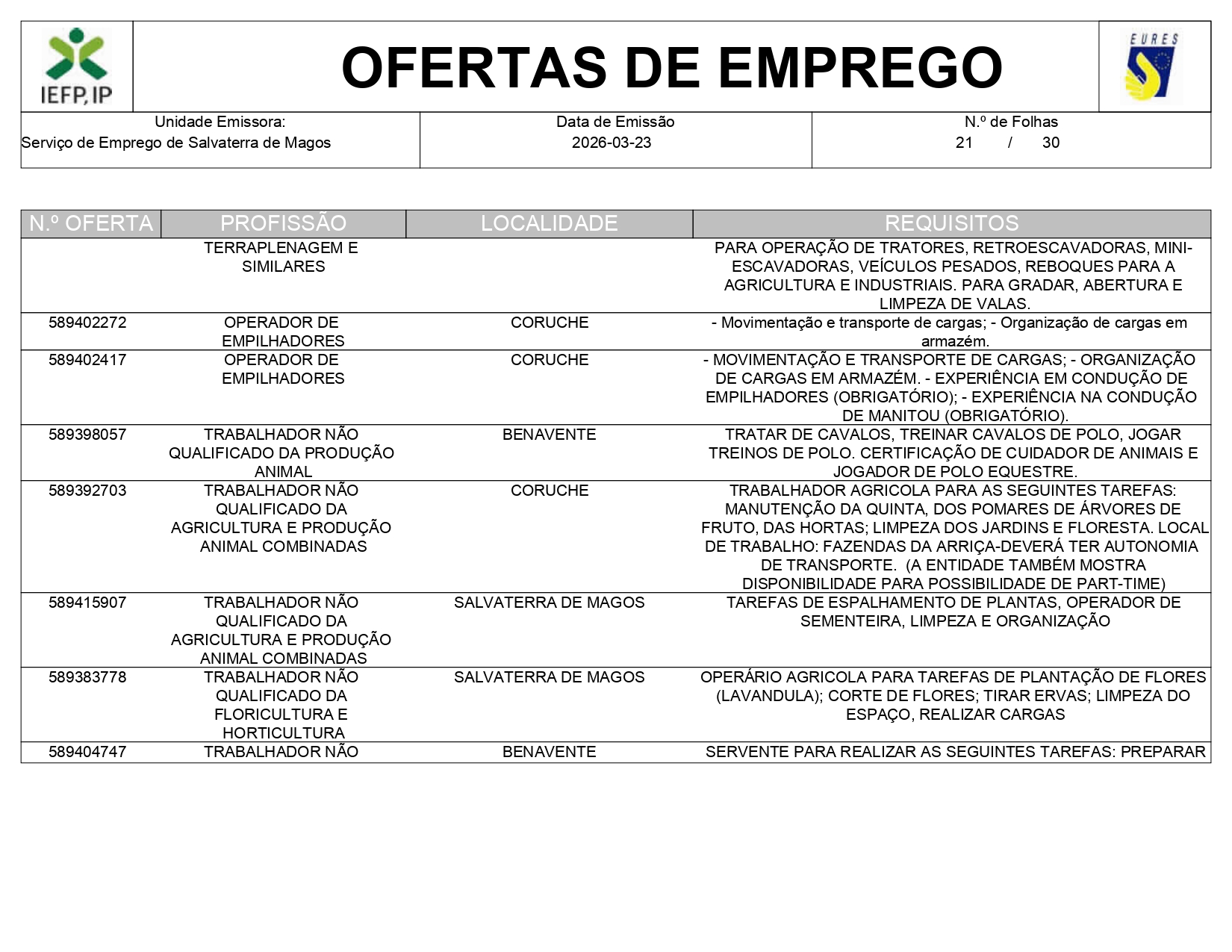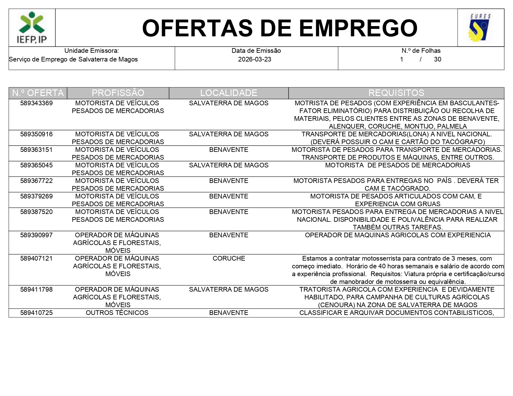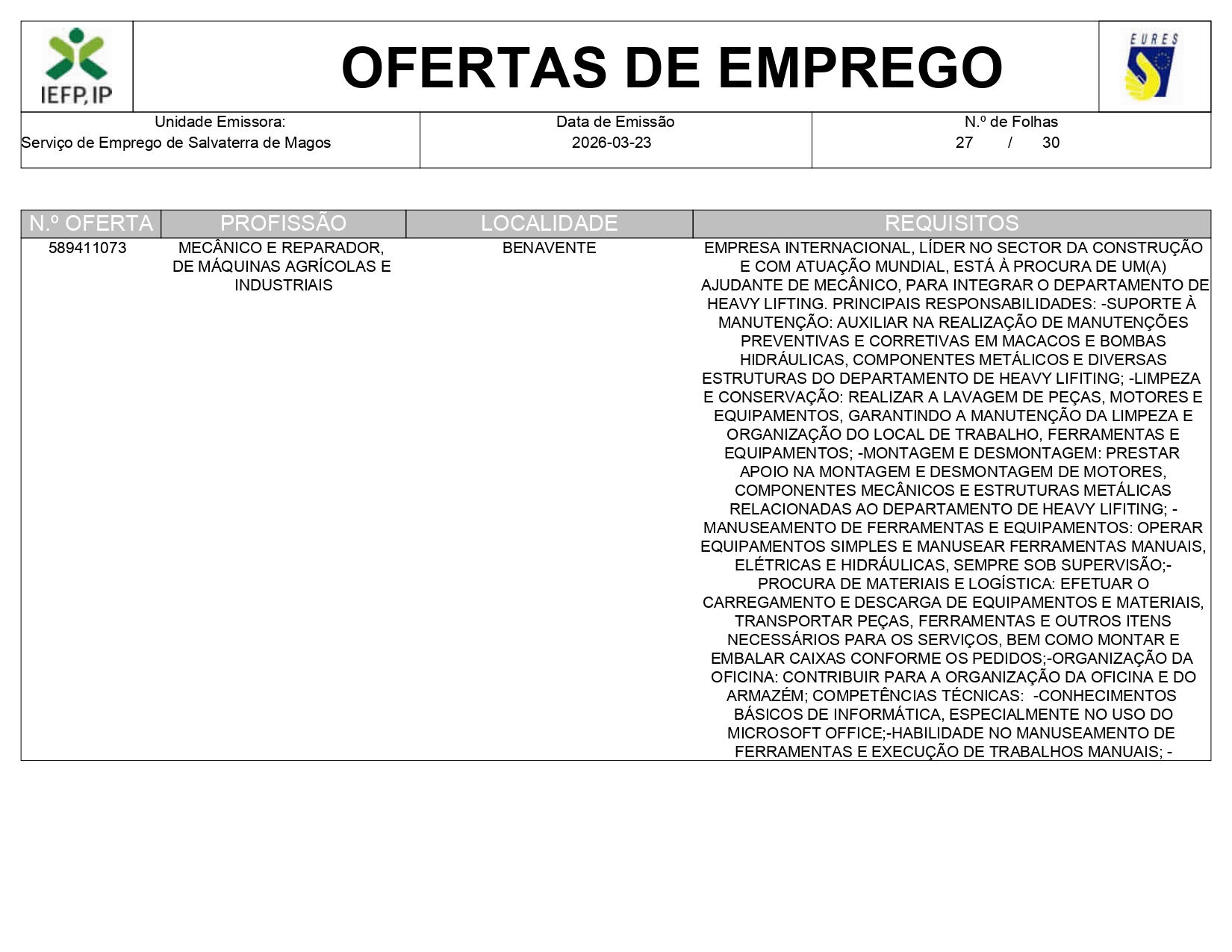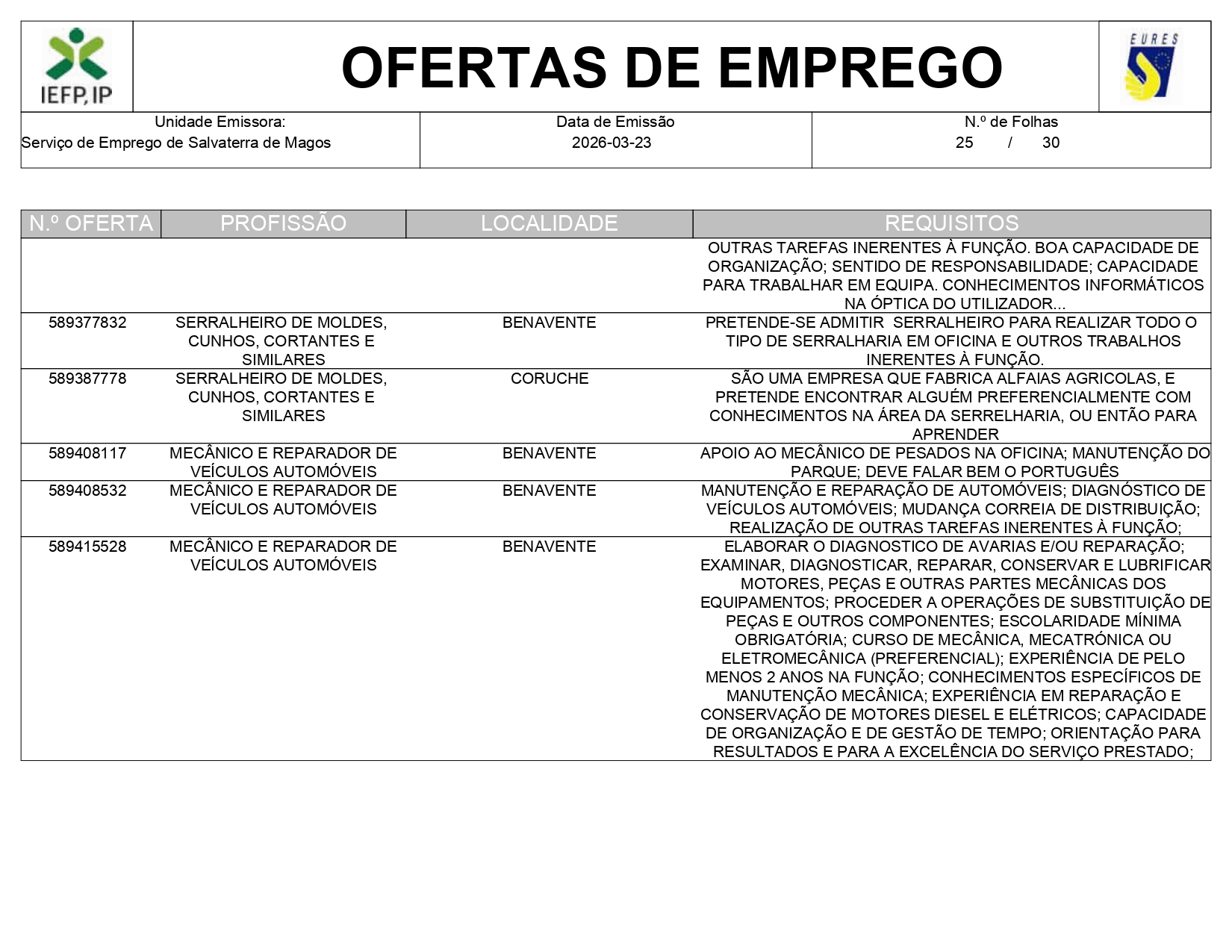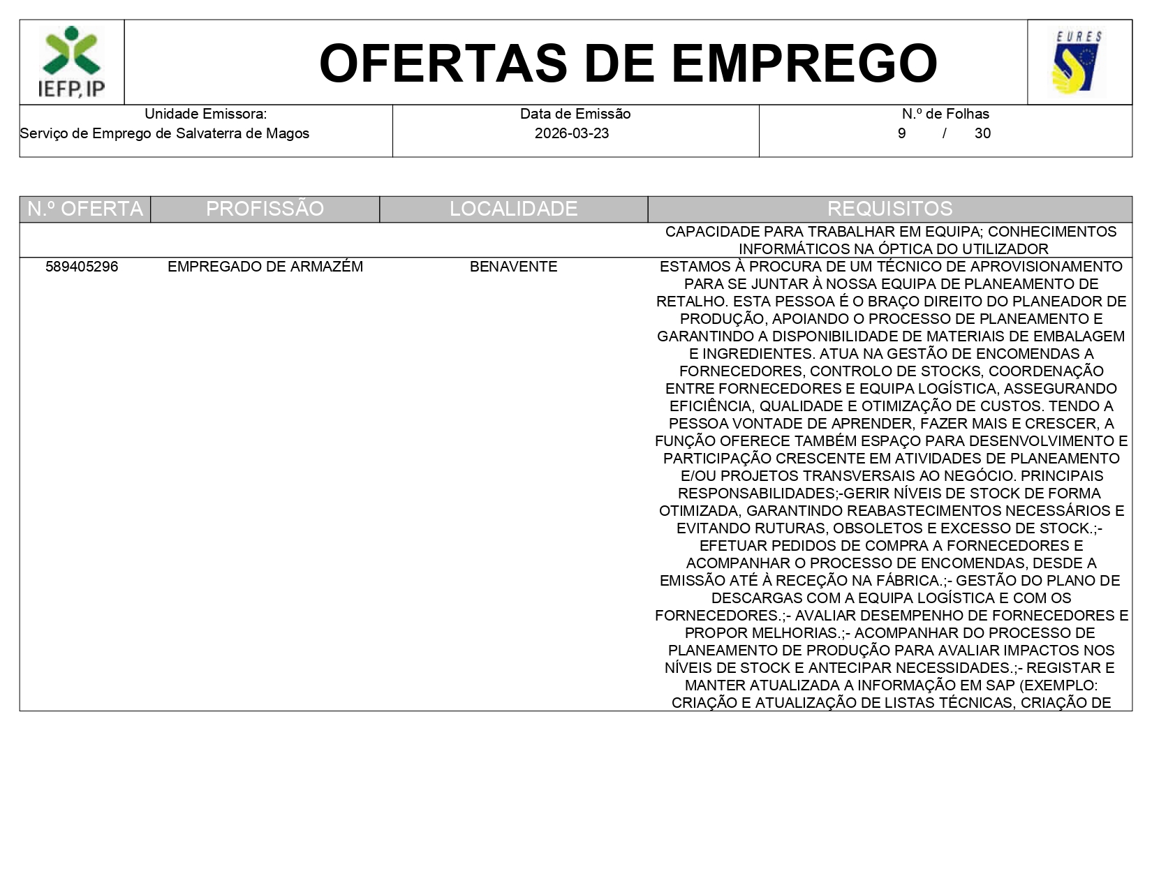 Ofertas de empregos IEFP