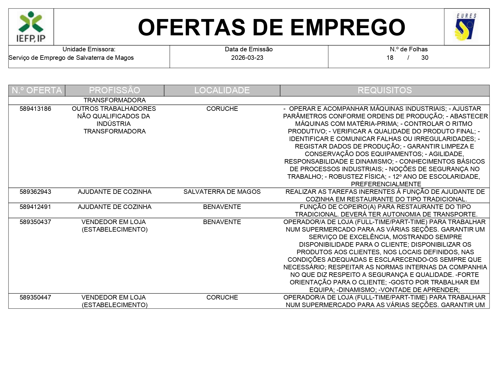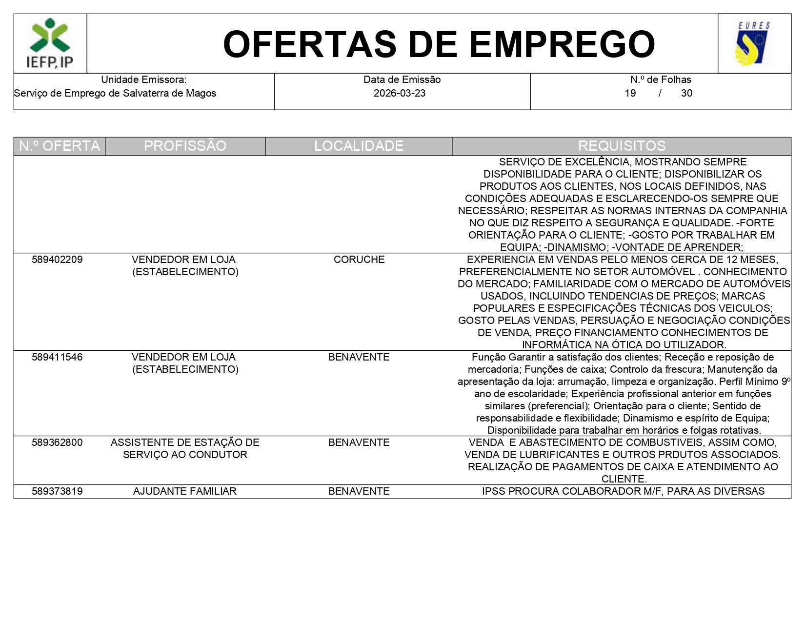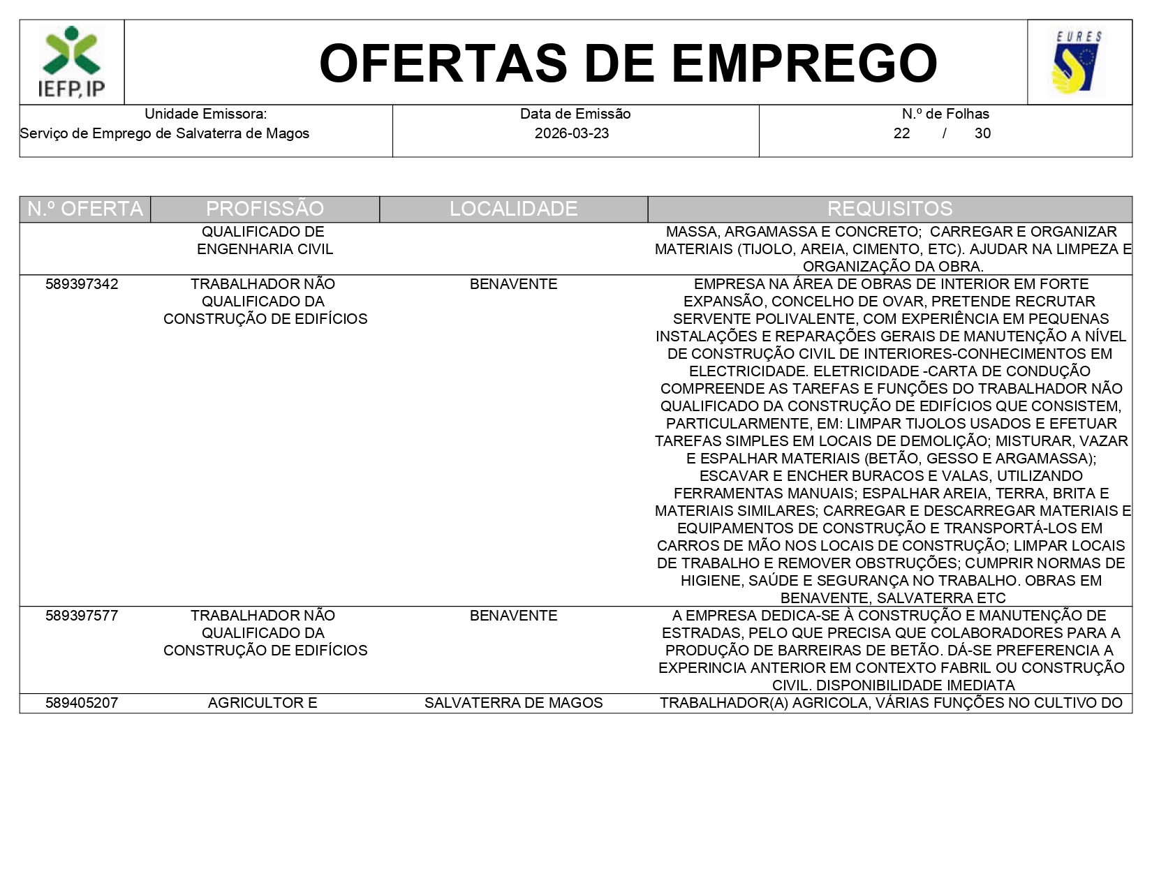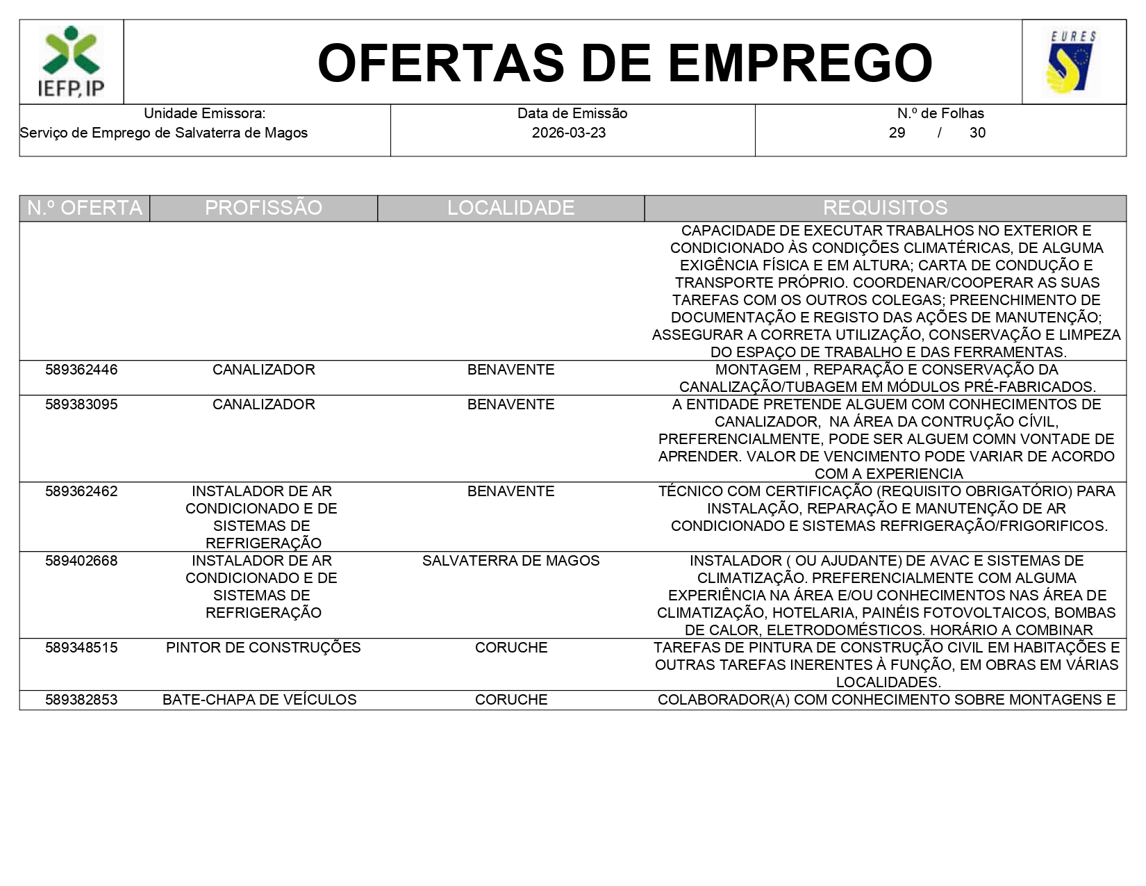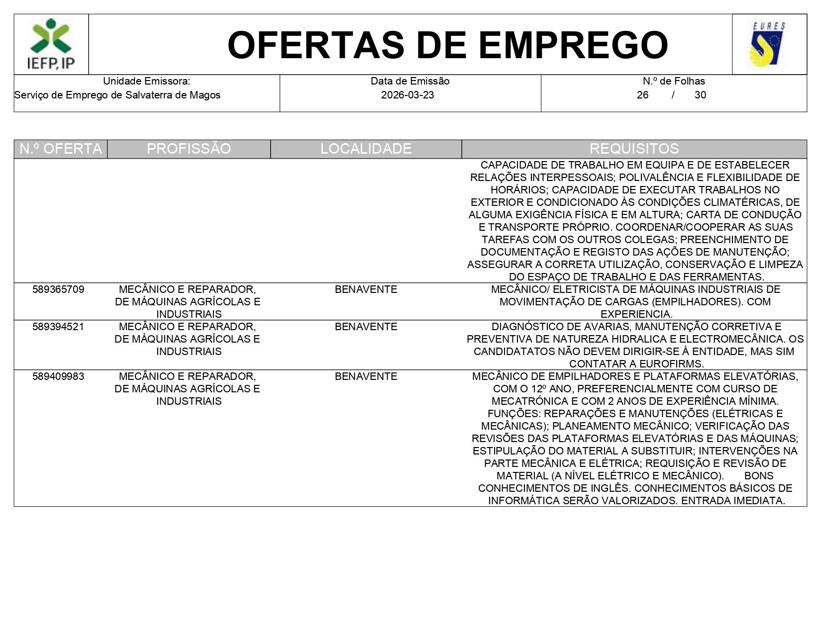 Ofertas de empregos IEFP